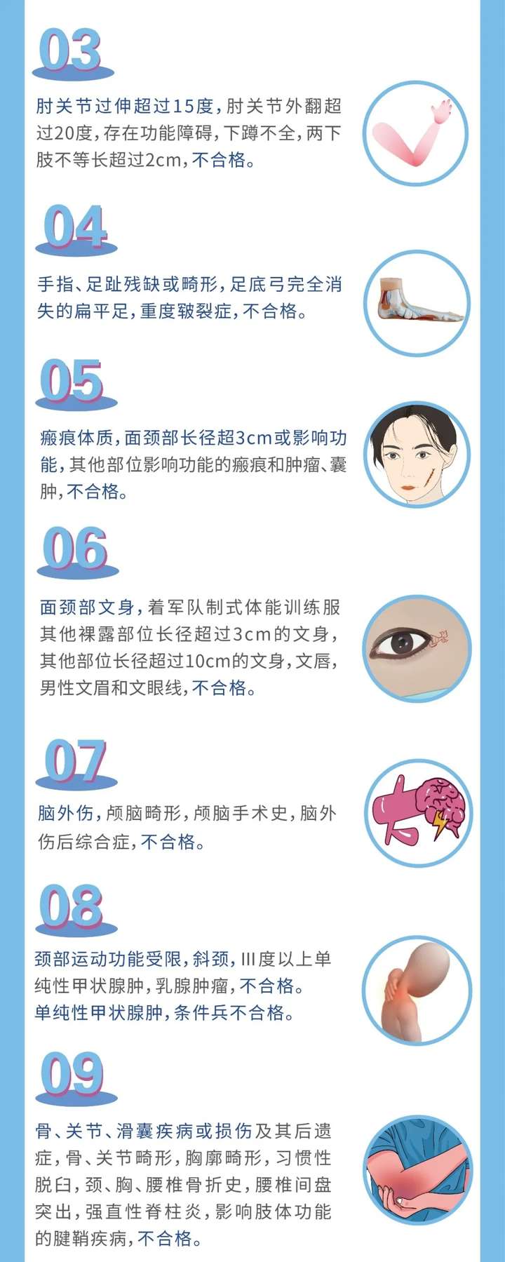 ☞上半年应征报名:普通高等学校全日制应届毕业生及在校生,年满18至22周岁;2021年普通高等学校全日制应届毕业生可以报名参加2021年上半年女兵征集,年龄放宽至23周岁。☞下半年应征报名:普通高中应届毕业生和普通高等学校全日制应届毕业生及在校生,年满18至22周岁。
