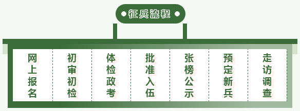 ☞下半年:8月中旬开始,9月底结束,新兵批准入伍时间为9月1日(下半年征兵重点征集各级各类院校应届毕业生、在校生和新生。)